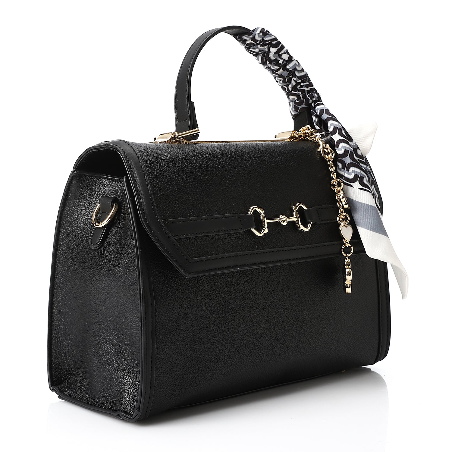 DEJAVU Hand-bag Women's Fashion DEE-DJTX-007 Black Top Handle Satchel With Scarf And Charms For Women
