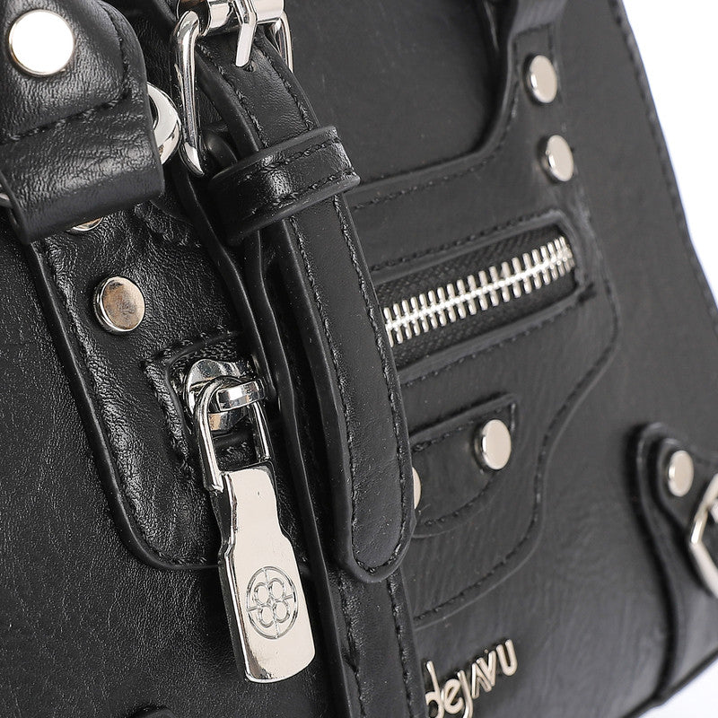 Black Zipped Trendy Top Handle Bag